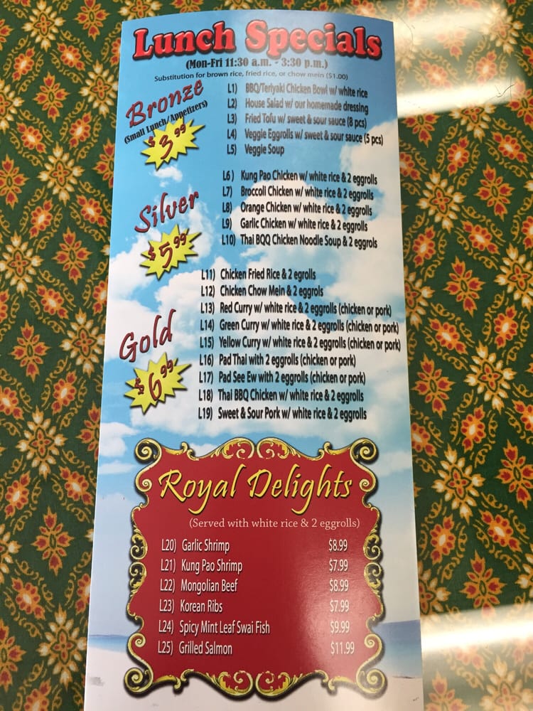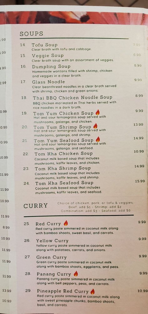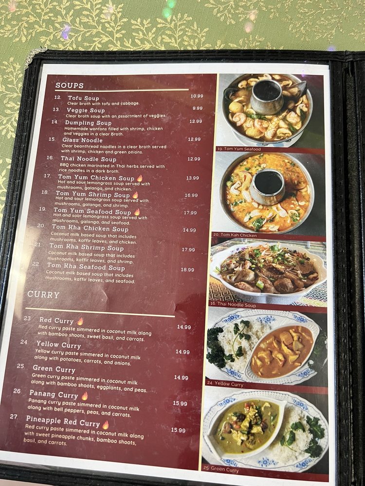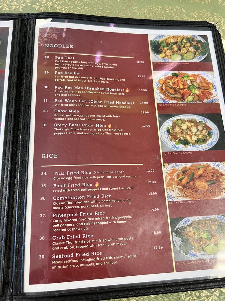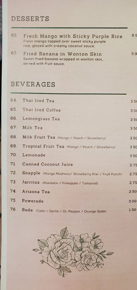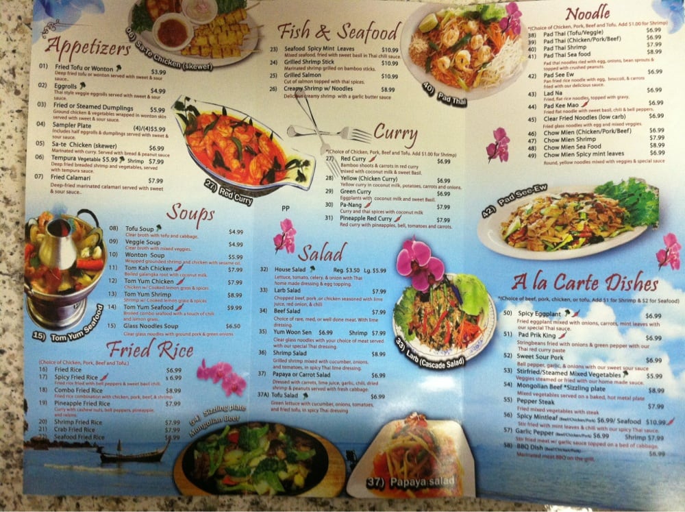 Introducing the menu at Thai Nary, a Thai restaurant offering a range of delicious options. From Orange Chicken Chow Mein to Chicken Larb Salad and Fried Tofu appetizers, there is something for everyone. The location in Azusa, CA provides convenience for those looking to dine in or order takeout. The reviews highlight the friendly service, with customers praising the owner Mary and enjoying dishes like Penang curry, Pad Thai, and mango sticky rice. With a welcoming atmosphere and tasty dishes, Thai Nary is a must-try for Thai food enthusiasts. Make sure to try the mango purple sticky rice, a customer favorite, and experience the authentic flavors of Thailand right in Azusa. Don't miss out on the happy hour specials and vegan options available at this gem of a restaurant.